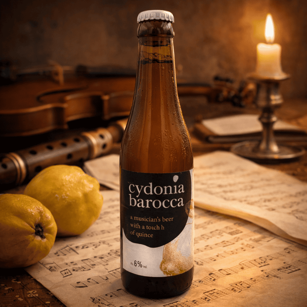 Cydonia Barocca is a striking Belgian blond beer (8.0% ABV) by The Wild Brewers, brewed with a subtle test of quince, a somewhat forgotten fruit that gives the beer a unique aroma and flavor profile.