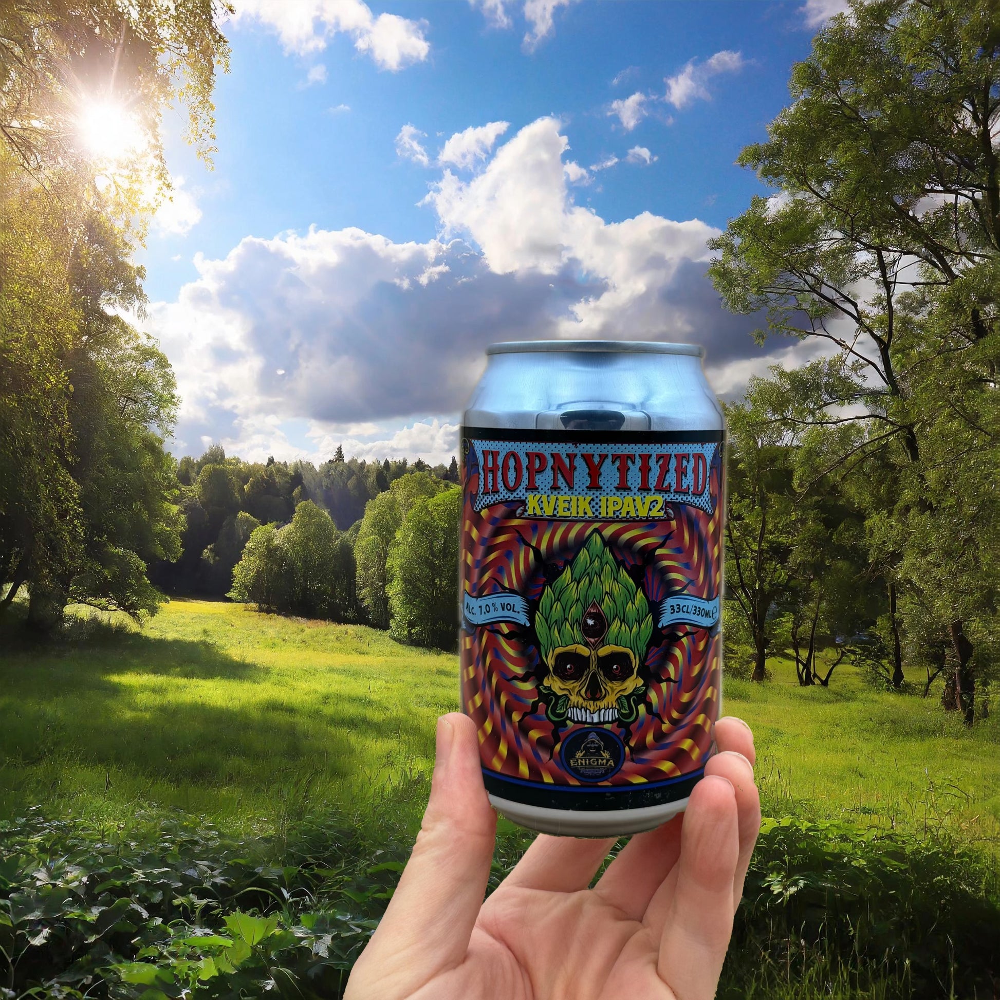 Enigma Hopnytized kveik IPA Is a 7.0% Farmhouse IPA. Kveik is a yeast that was originally used in Scandinavia for saisons that were brewed on farmyards, but also proved to be excellent for refreshing, somewhat dry IPAs