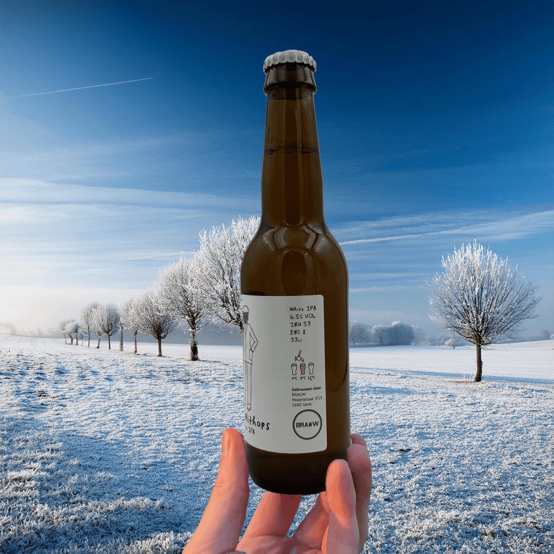Jan Withops is a White IPA. This beer combines the best of 2 styles. The malt and the herbs are typical for a Belgian white beer. The hop gift is inspired by IPAs, but then European colored.