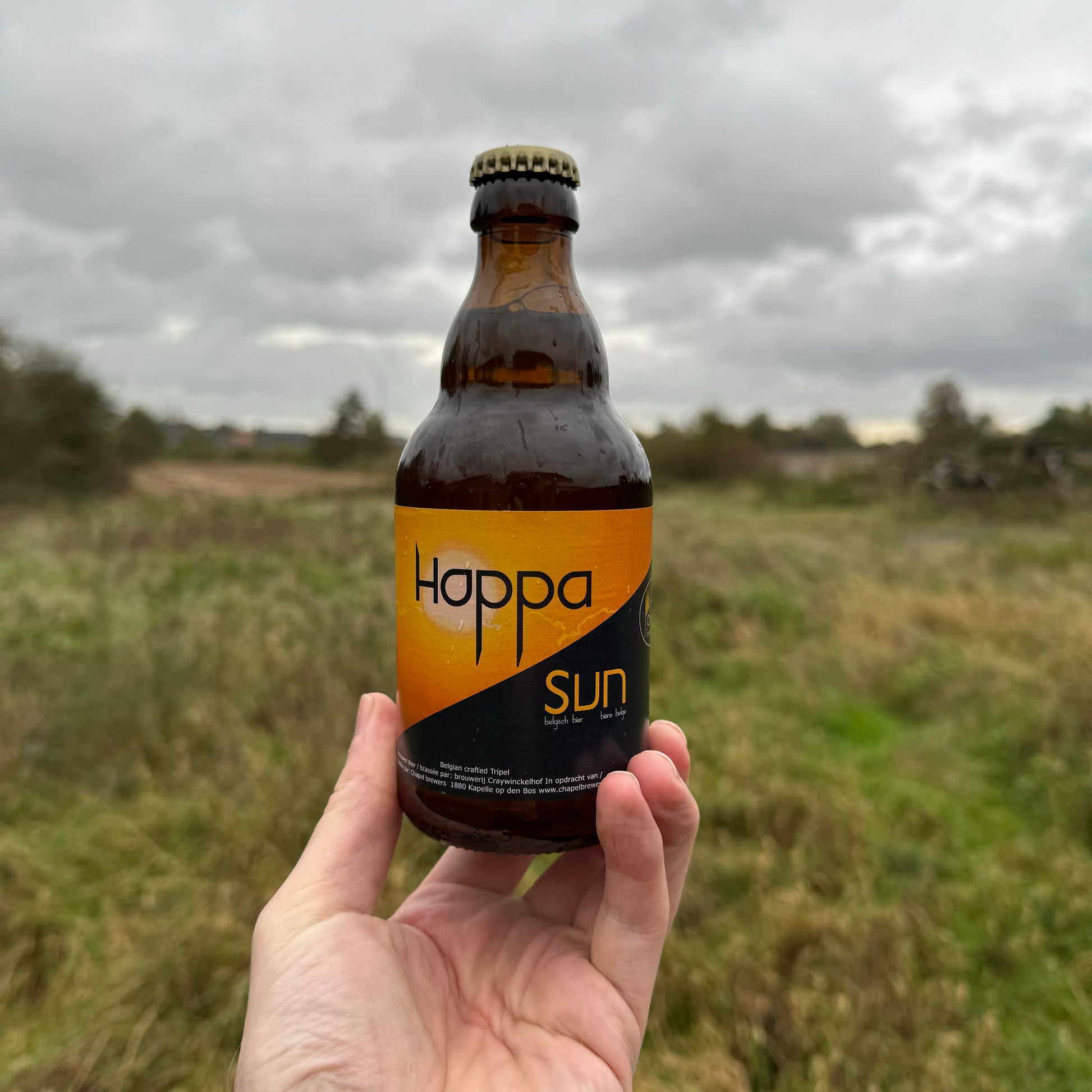 Hoppa sun est un triple blond doré top-fermenté avec une fermentation secondaire en bouteille et un volume d'alcool de 8,5%.